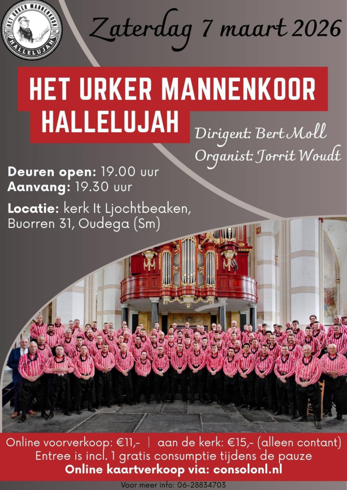 Het Urker Mannenkoor “Hallelujah” is een bloeiende zangvereniging met een duidelijk karakter. In een ontkerstenend Nederland mogen wij met tachtig mannen, onder wie vele jongeren, zingend de boodschap uitdragen van Gods genade voor zondige mensen. Het repertoire bestaat uit psalmen, christelijke liederen in diverse talen en klassieke koorwerken. Regelmatig verschijnen nieuwe geluidsdragers. Vanwege de grote verdiensten voor de christelijke muziek is Het Urker Mannenkoor “Hallelujah” onderscheiden met de Koninklijke Erepenning.